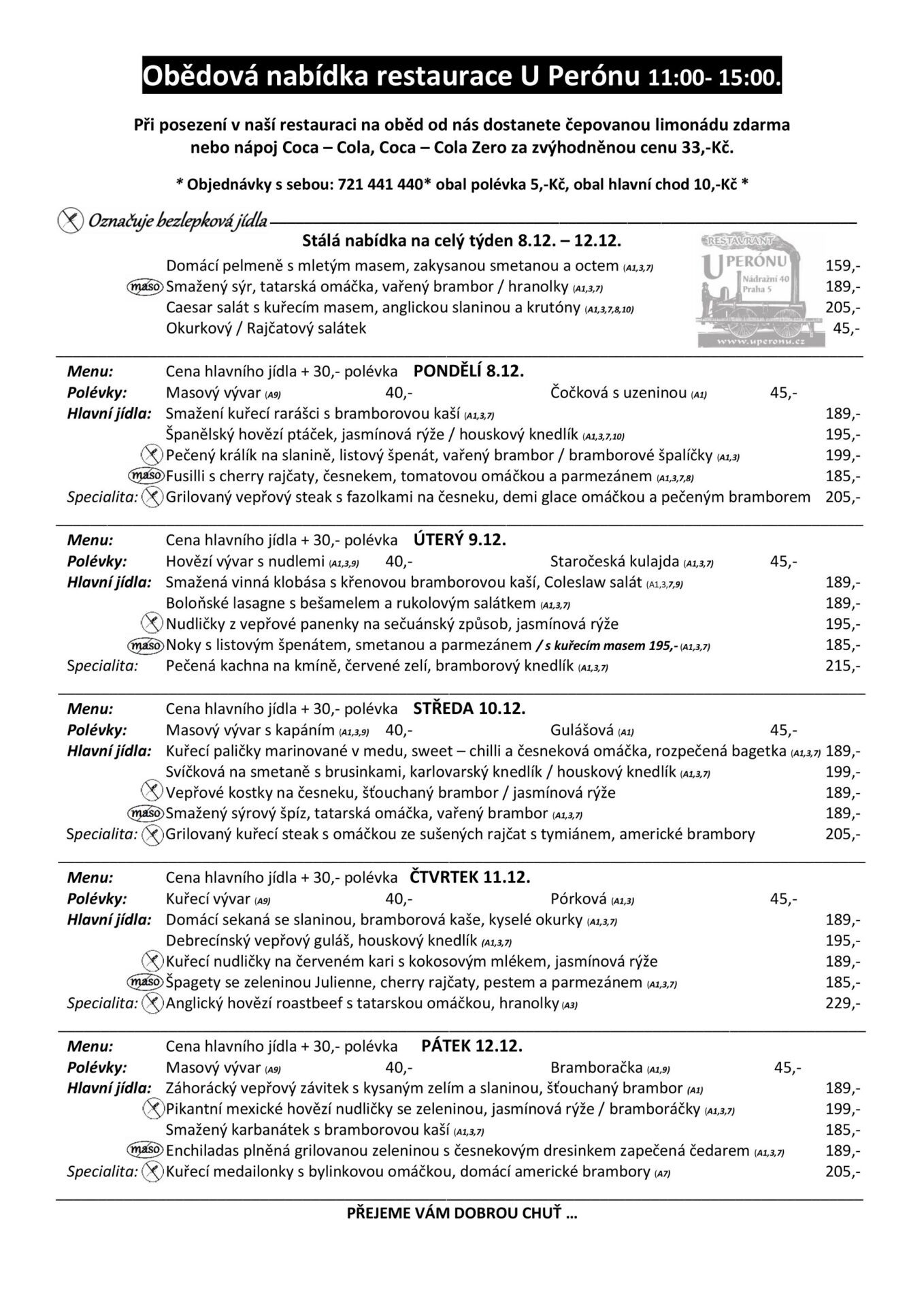 Naše restaurace nabízí skvělé polední menu s výběrem čerstvých sezónních ingrediencí, které vám zajistí zdravé a chutné obědy.