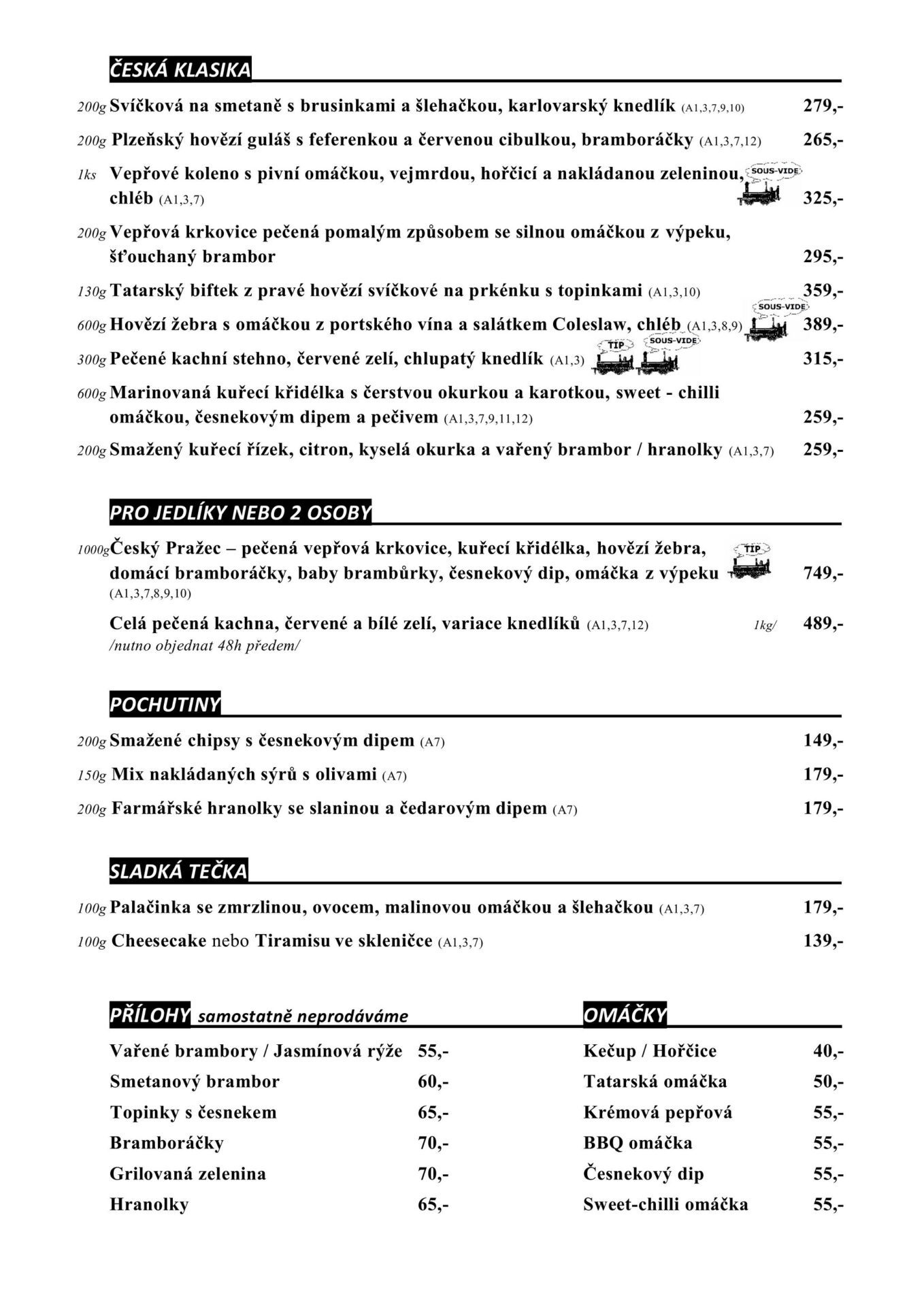 | Tradiční „Roastbeef“ pečený do růžova s domácí tatarskou omáčkou | 1kg/1300,- | |